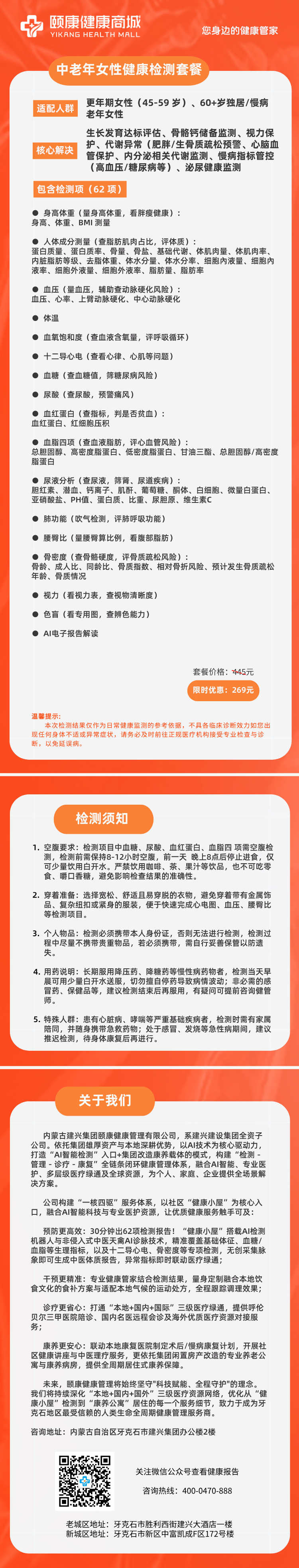体检预约-中老年女性健康检测套餐-建兴集团颐康健康管理