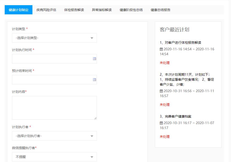 医生针对客户的异常指标,有目的性的进行干预。客户按照医生制定的计划,执行并打卡。