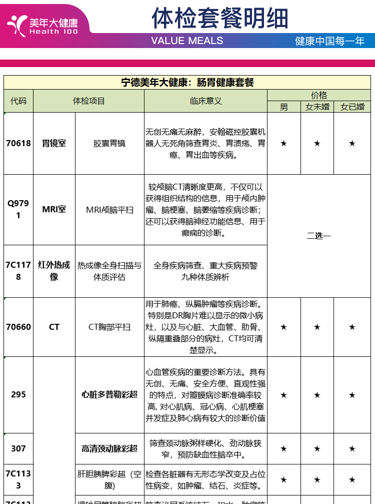 体检预约-肠胃健康套餐-宁德美年