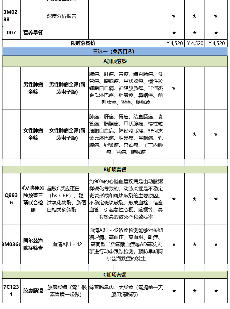 体检定制套餐